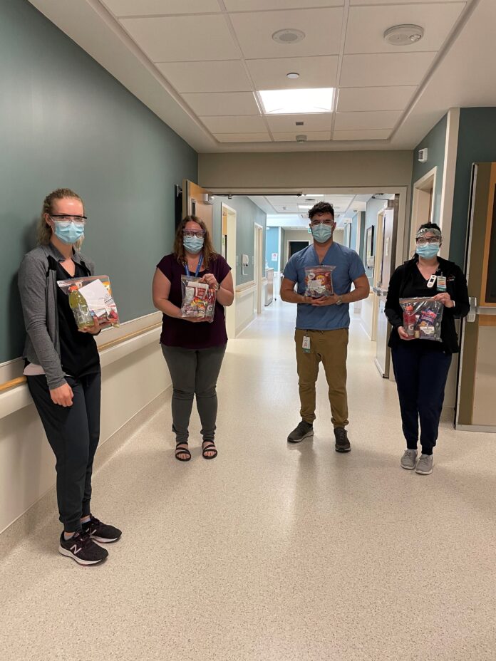 Lisa Sigurdson and Mia Loeppky wanted to thank staff at Selkirk Regional Health Centre for being brave and courageous during the COVID-19 pandemic. After receiving a grant from #RisingYouth they decided to purchase small food items and accessories like gift certificates, nail files, body lotion and hand sanitizers and assemble 150 treat bags for staff at the hospital. In addition to the grant monies, contributions to these amazing bags were also made by local organizations like Dairy Queen Selkirk, Canalta Selkirk, Centennial School, and Ecole Selkirk Jr. High School. Each treat bag was created to express appreciation and remind staff that so many people are sending positive thoughts their way.