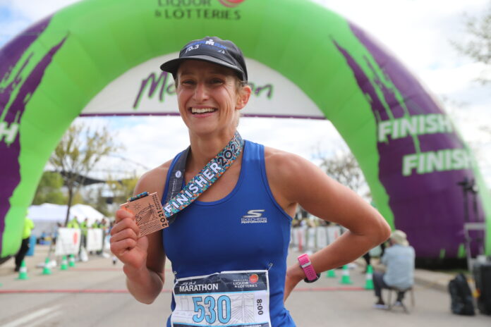 Brain crossed the finish line in first place to win the Manitoba Marathon men’s race with a time of 2:28:24. Birian, who lives in East St. Paul, is a alumni of the Manitoba Bisons cross country and track teams.