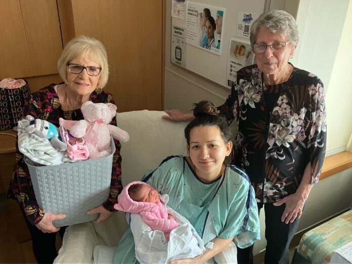 Chair of the Selkirk Hospital Gift Shop volunteers, Betty Milkowski, and volunteer Bev Hykawy maintained a tradition by gifting Azayla and mom with diapers, playpen, toys, blankets and clothing to celebrate the arrival of the first baby of 2025. Milkowski said the volunteers make the gift tradition possible.