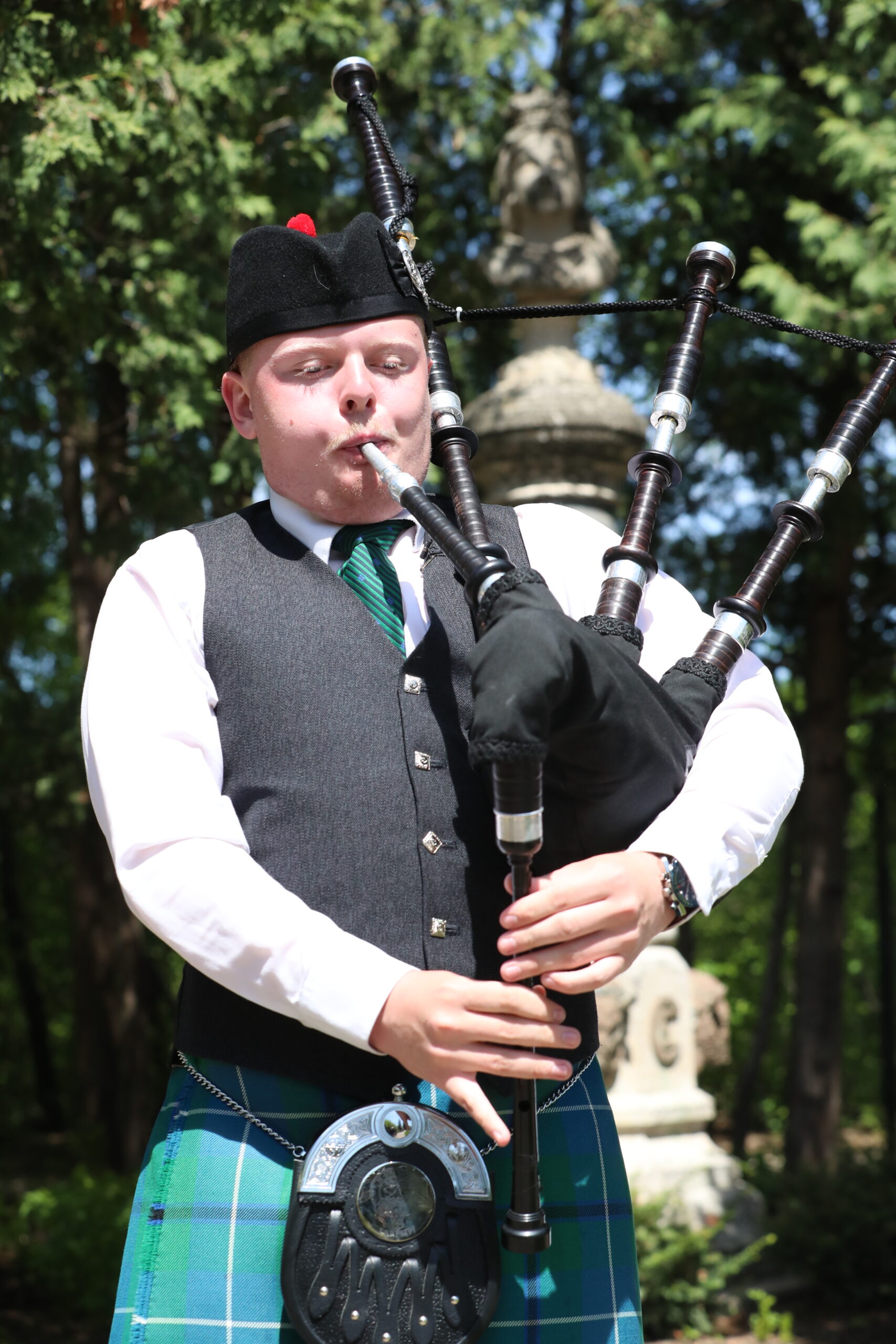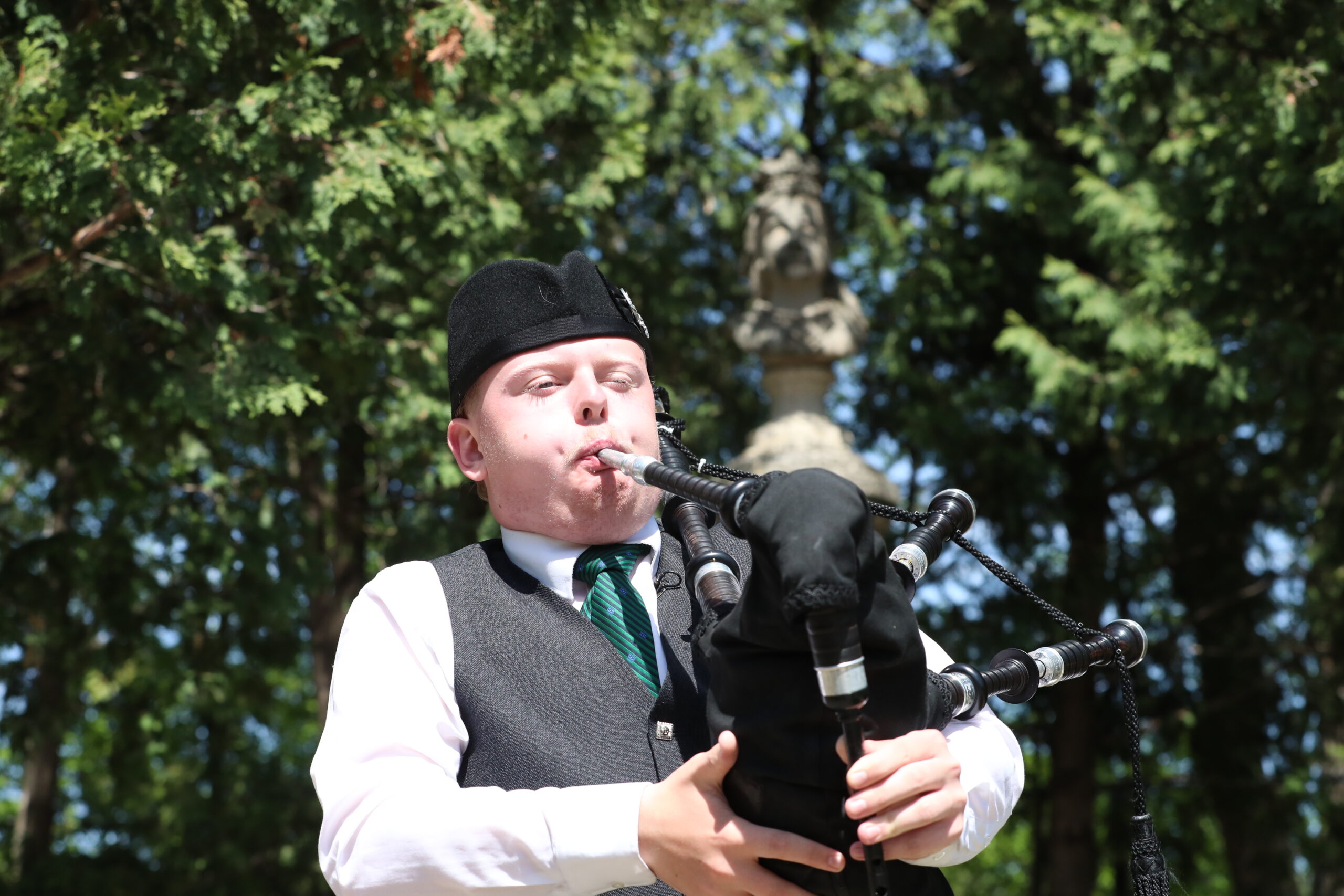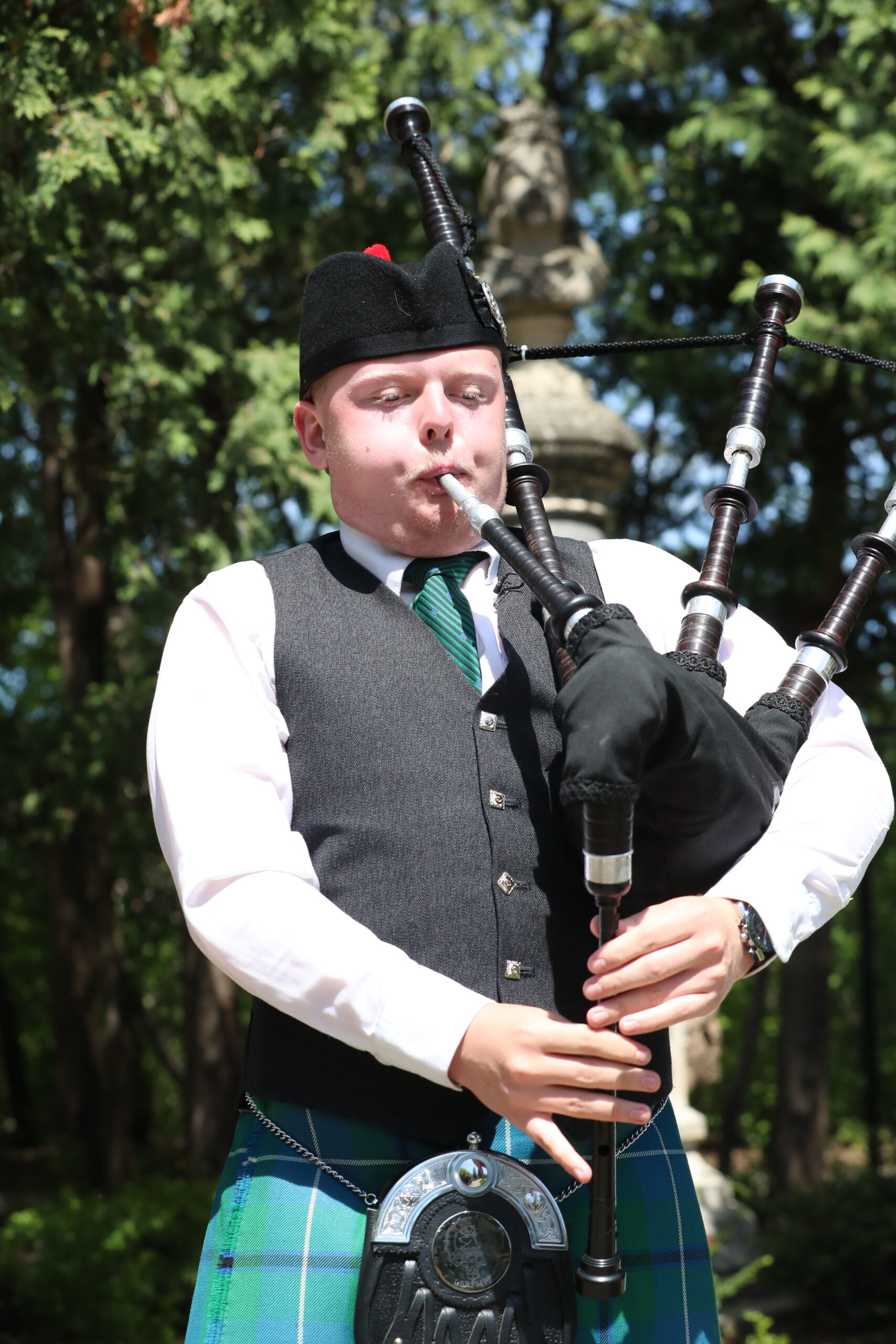 The local St. Andrew’s Society did its part to help Manitobans celebrate Victoria Day as piper Matthew Owen Hunt of the Lord Selkirk Robert Fraser Memorial Pipe Band stood close to a statue of Queen Victoria in Assiniboine Park’s English Garden.