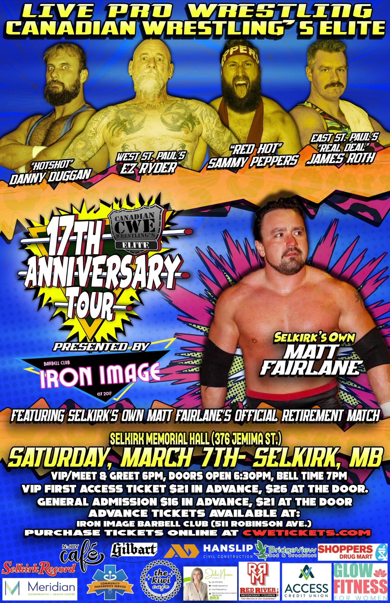Canadian Wrestling’s Elite brings live professional wrestling back to Selkirk, Manitoba for the first time in many years with a loaded card on The 17th Anniversary Tour March 7.